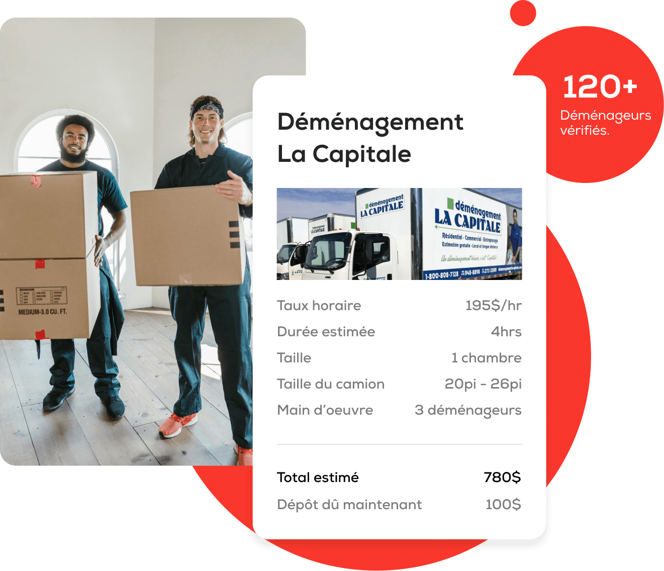 Transparence des tarifs, comparaison de soumissions instantanées et réservation en ligne facile avec des entreprises de déménagement exclusivement testées.
